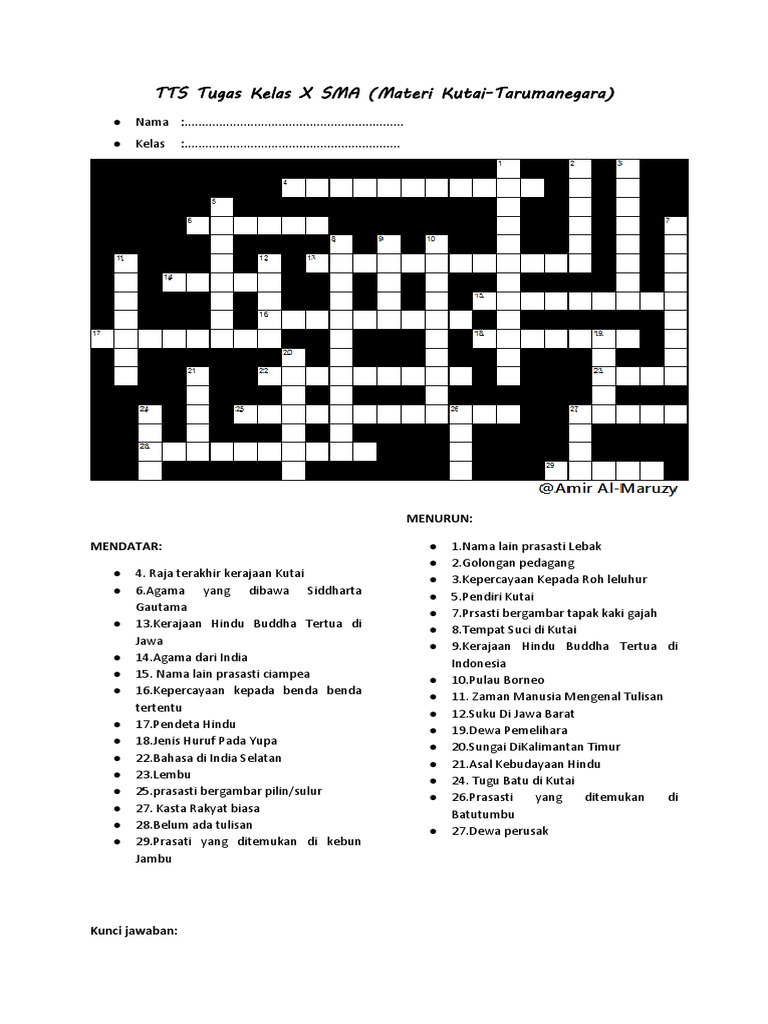 Kunci Jawaban Soal Sejarah Kerajaan Islam di Indonesia 1 D 11 E 21 E 31 E 41 E 2 B 12 E 22 B 32 B 42 B 3 A 13 D 23 E 33 B 43 B 4 C 14 E 24 A 34 A 44 B 5 D 15 B 25 D 35 C 45 D 6 B 16 E 26 C 36 B 46 C 7 C 17 D 27 B 37. Mpol jari sebagai ganti tanda tangan -- kempa kl tera dari kerajaan melayu -- mohor 1 tera cap kerajaan 2 cap pd mata uang -- pos stempel pos Ana -- sadat wayang kulit yang menuntaskan lakon para wali dari kerajaan demak sampai kerajaan pajang anak-anak wayang dan dalang beserta niyaga mem. Kami mengumpulkan soal dan jawaban dari TTS Teka Teki Silang populer yang biasa muncul di koran Kompas Jawa Pos koran Tempo dll.