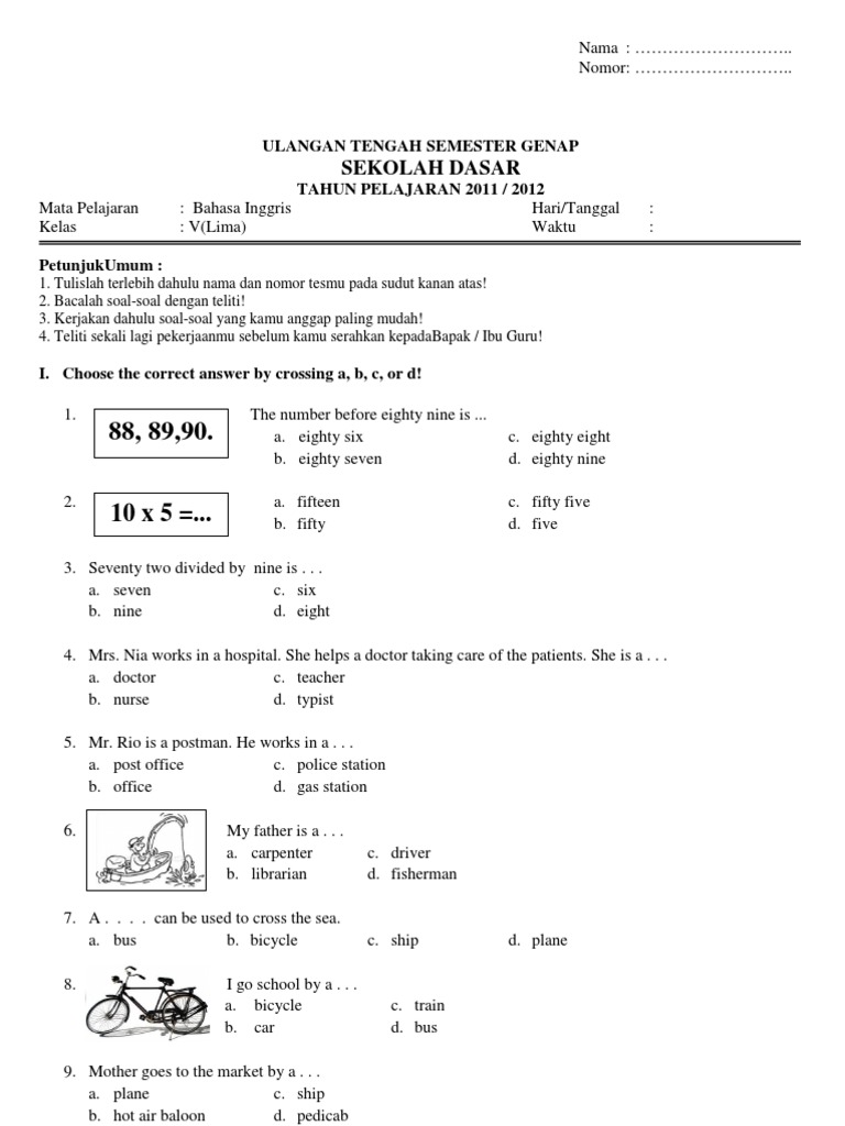 Soal Bahasa Inggris Sd Kelas 5 Semester 2