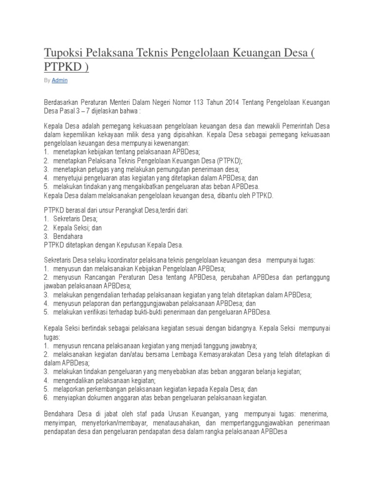 Tupoksi Ptpkd Pelaksana Teknis Pengelolaan Keuangan Desa