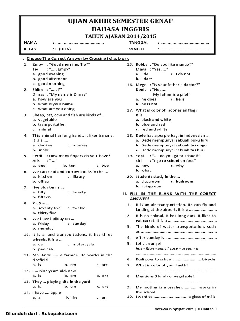 2 日前 Assalamualaikum adik-adik. Soal Revisi adalah blog yang berbagi informasi Soal Ukk Bahasa Inggris Kelas 5 Semester 2 2020 yang mana file-file ini erat hubungannya dengan wallpaper berikut ini adalah kumpulan dari berbagi sumber tentang Soal Ukk Bahasa Inggris Kelas 5 Semester 2 2020 yang bisa bapakibu gunakan dan diunduh secara gratis pada tautan link dibawah ini. Soal UAS UKK Bahasa Inggris Kelas 5 SD Semester 2 Dan Kunci Jawaban 1 Juni 2017 17 Juni 2020 Bimbingan Belajar Brilian 0 Komentar A.